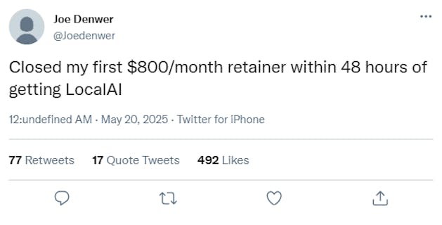 What you're offering with LocalAI is better, faster, and delivers immediate ROI, making it an obvious "yes" for them and a highly profitable retainer model for you.